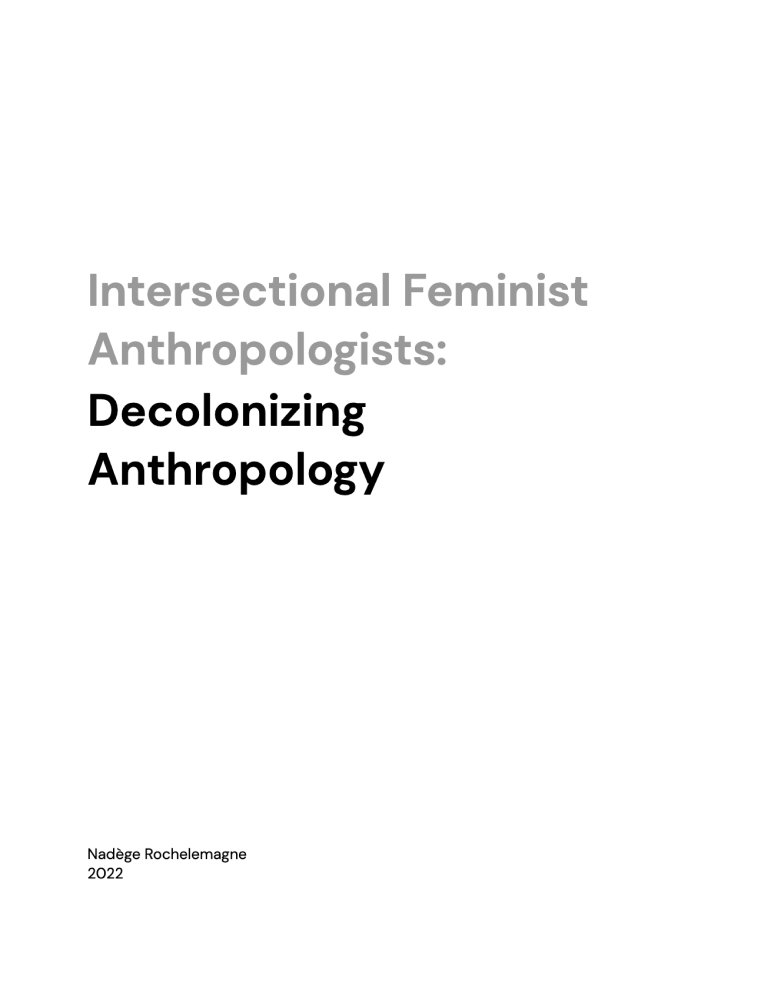 To decolonize anthropology, works that come from an intersectional feminist perspective can lead the way because they address the patriarchy ingrained in societies as well as the cultural hegemony of neocolonial power structures.